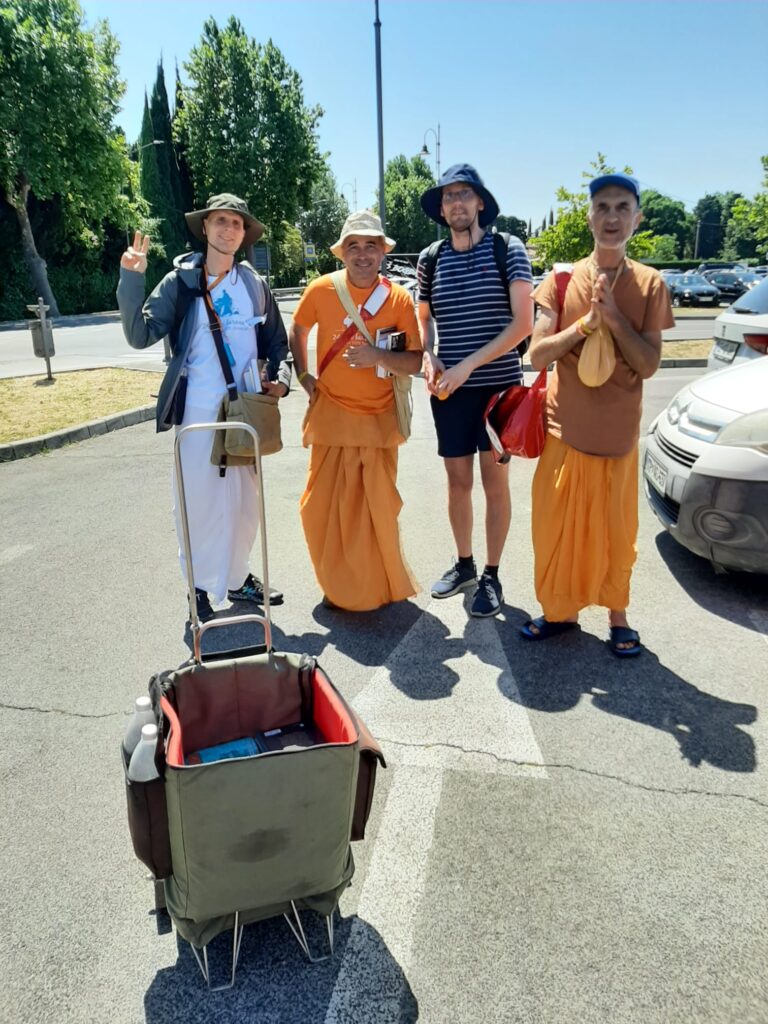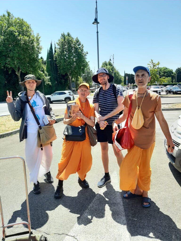 In res je bilo čudovito, kako zelo so se udeleženci ekokaravane trudili, da bi k povezovanju s Krišno navdihnili čim več živih bitij. Nekateri so delili Šrila Prabhupadove knjige, drugi piškote, tretji so mimoidoče vabili k plesu, četrti navdušeno peli in igrali na glasbila… Sad skupinskega truda je bilo 177 podeljenih knjig, od tega 37 obsežnejših. Kdo ve, koliko bhakt se bo poleg Šri Šri Nitaj Gaura Nataradže, Tulasi devi in Šrila Prabhupade zbralo na naslednji Padayatri…